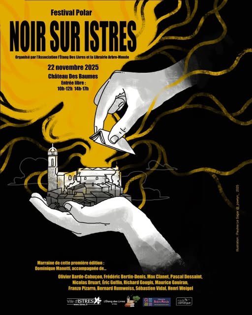Fruit d’une collaboration entre la ville d’Istres, la librairie Arbre-Monde, Radio Camargue, l’association L’Étang des Livres (rappelons que la commune se situe entre deux étangs, celui de Berre et celui de l’Olivier) et les éditeurs partenaires, Noir sur Istres, le Festival du Polar, propose sa première édition. Pour cette première, il a pour marraine Dominique Manotti. Autour d’elle, treize auteurs des littératures policières pour arpenter les salles du Château des Baumes l’espace d’une journée : le samedi 22 novembre. Au programme : du cinéma (la veille du salon), une table ronde sur l’engagement (politique et social), une conférence sur l’ombre tenace de Jean-Claude Izzo, des dédicaces, des ventes de livres et surtout des rencontres.